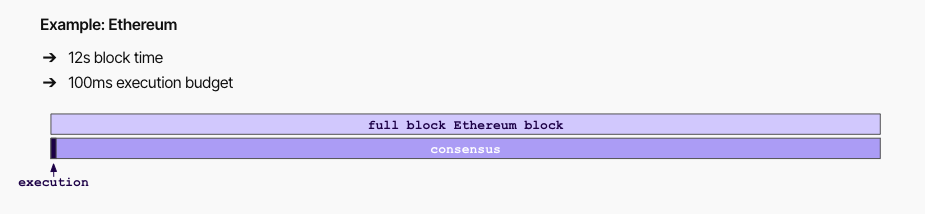Decoupling consensus from execution allows Monad to substantially increase the execution budget, since execution goes from occupying a small fraction of the block time to occupying the full block time.